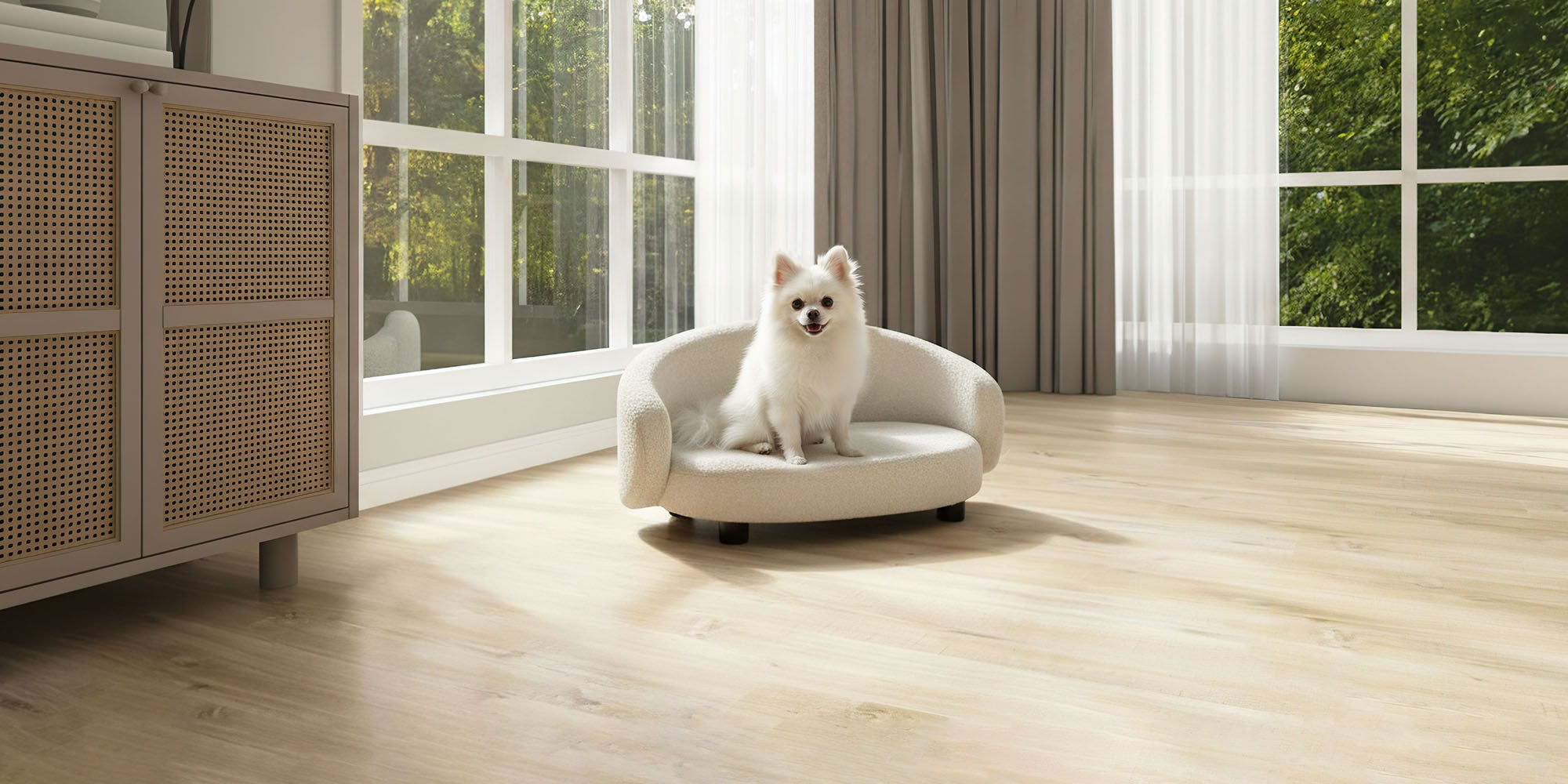 Pet Couch Crescent Shape for Small to Medium Pets, Bouclé Ivory 61058